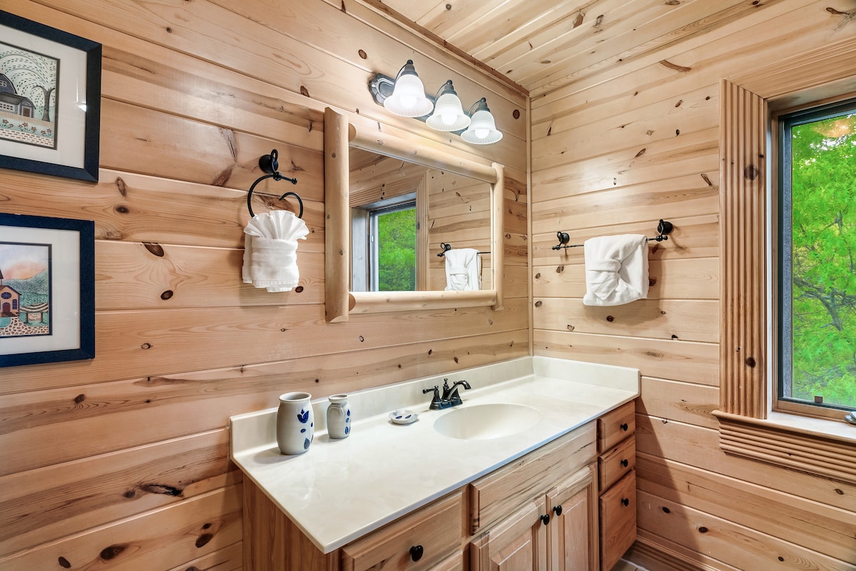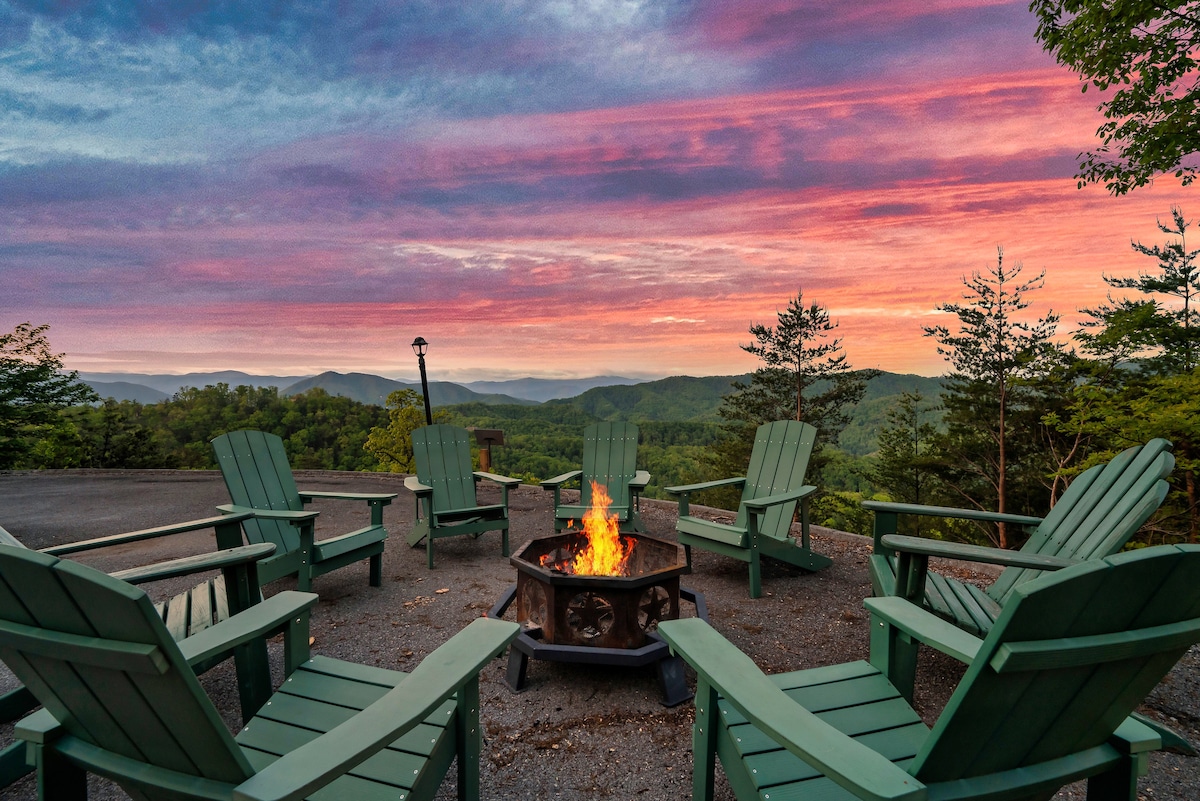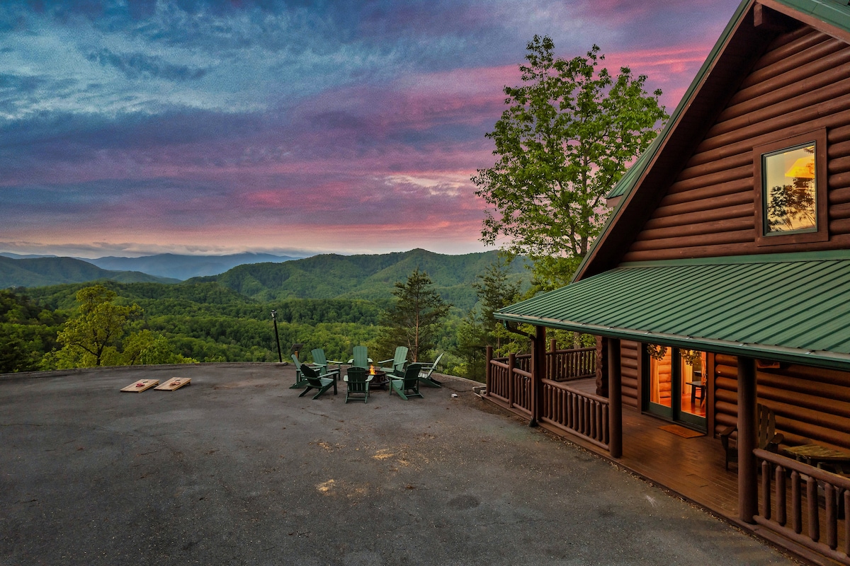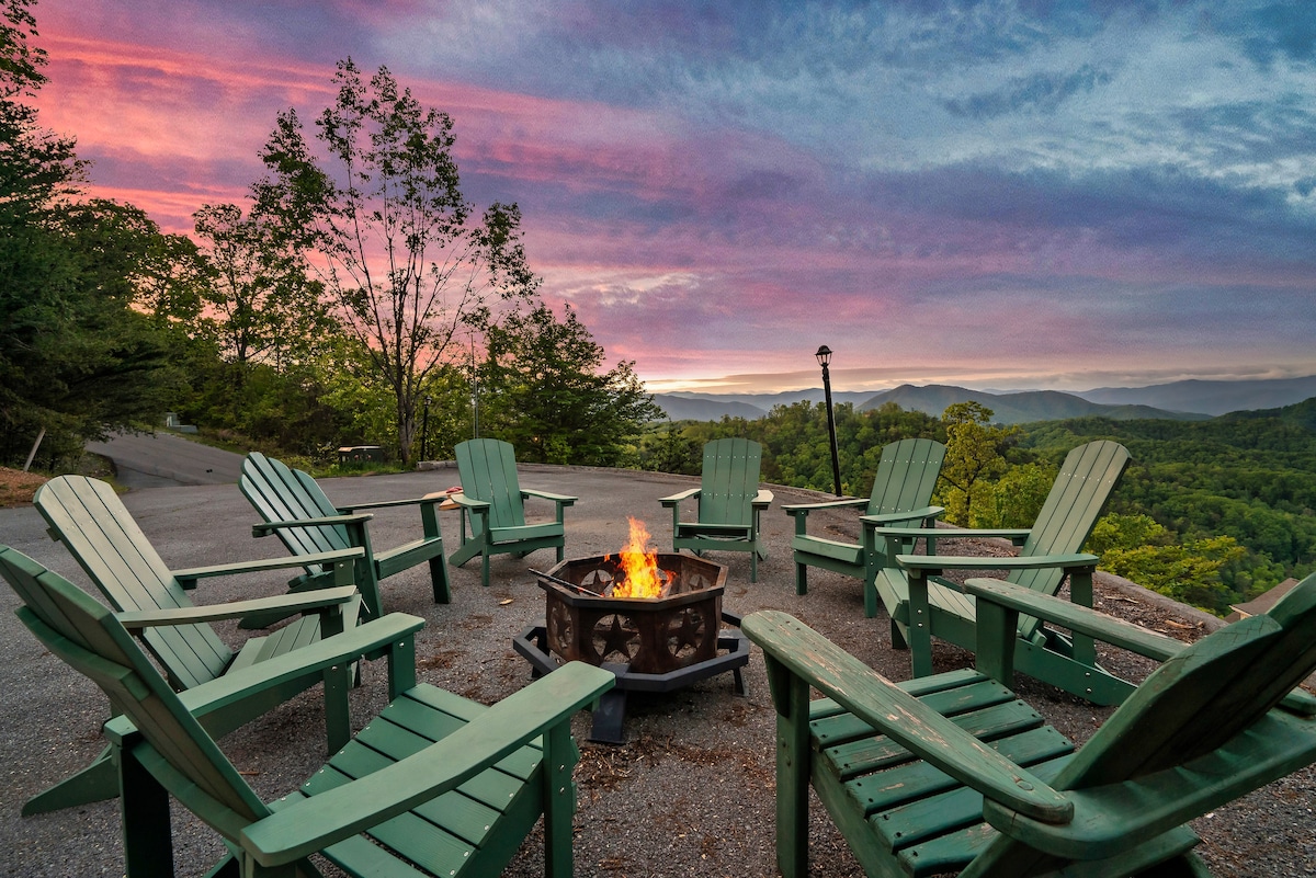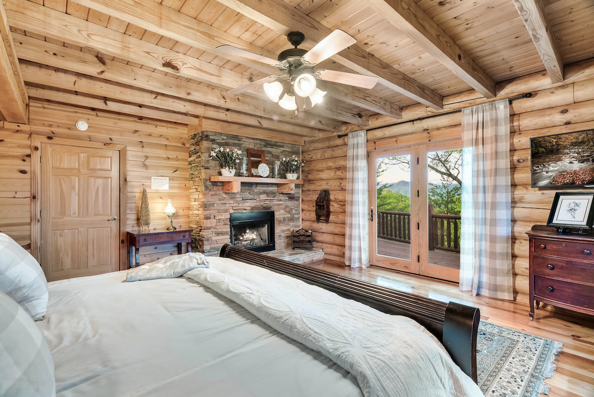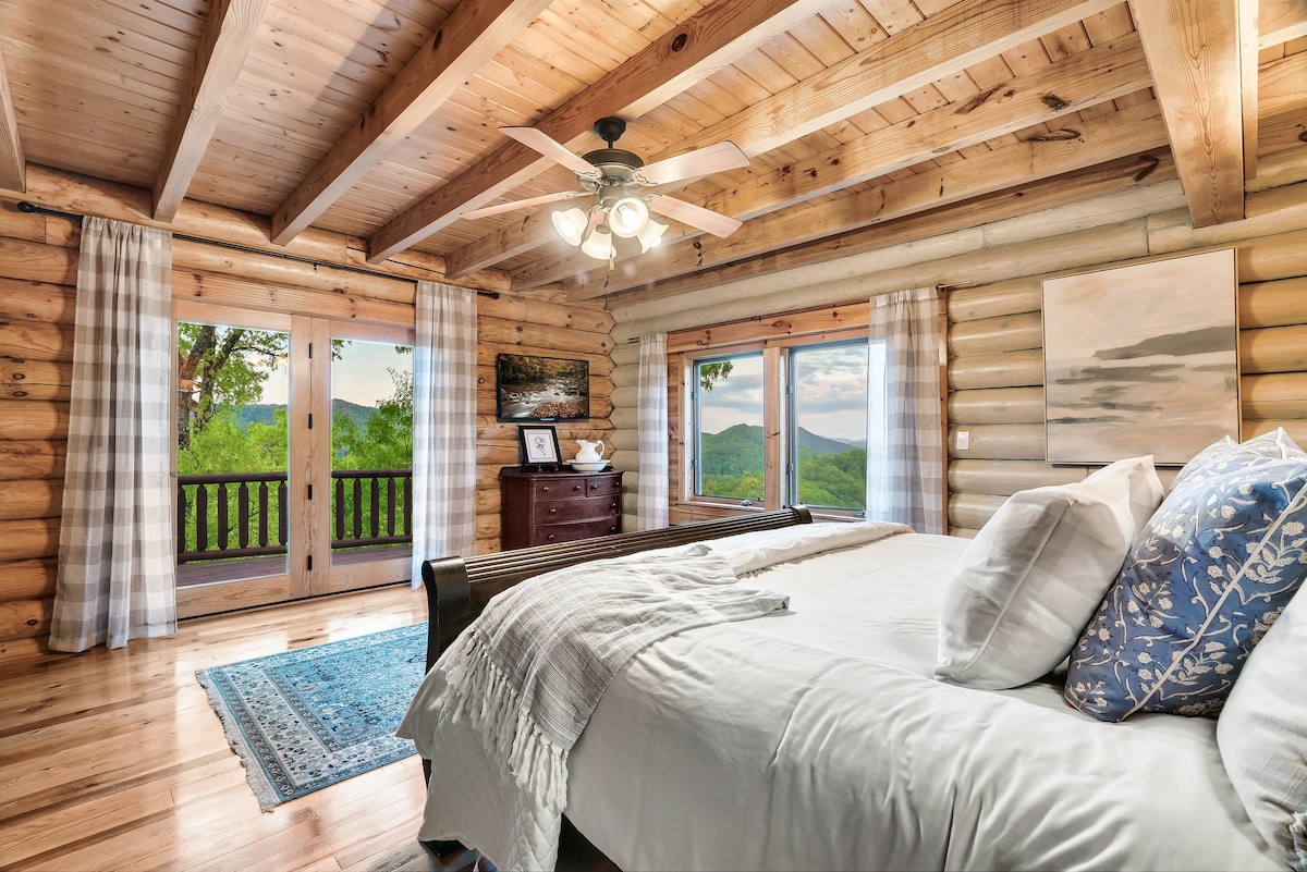 From the handcrafted pine logs to the soaring cathedral ceilings and stone fireplaces, every detail of The Knotty Lodge blends rustic charm with modern luxury. Wake up to panoramic views from 2,100 feet above sea level and enjoy peaceful mornings or relaxing sunsets from the spacious decks.