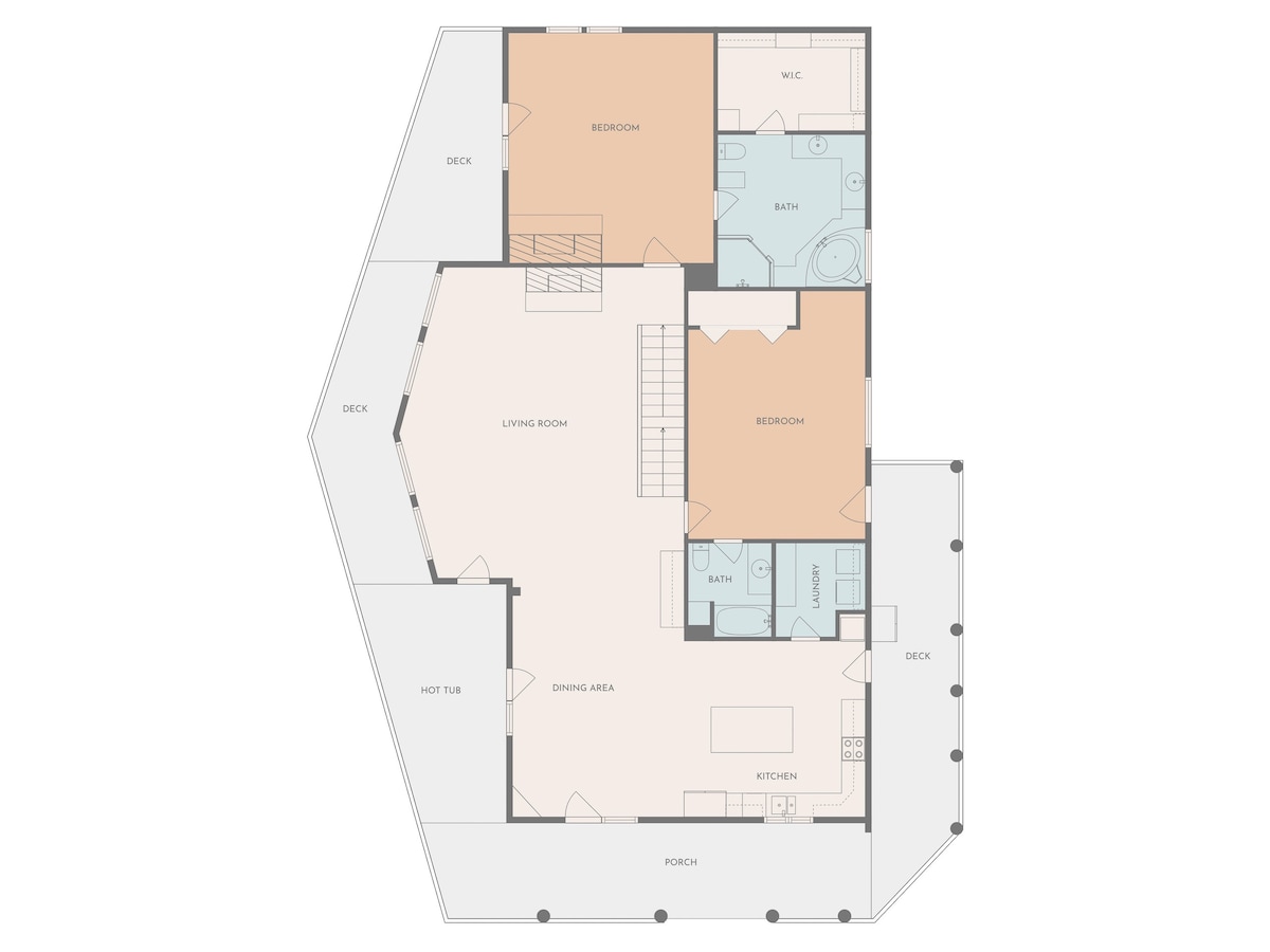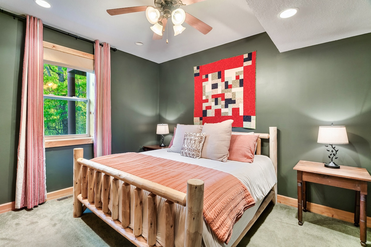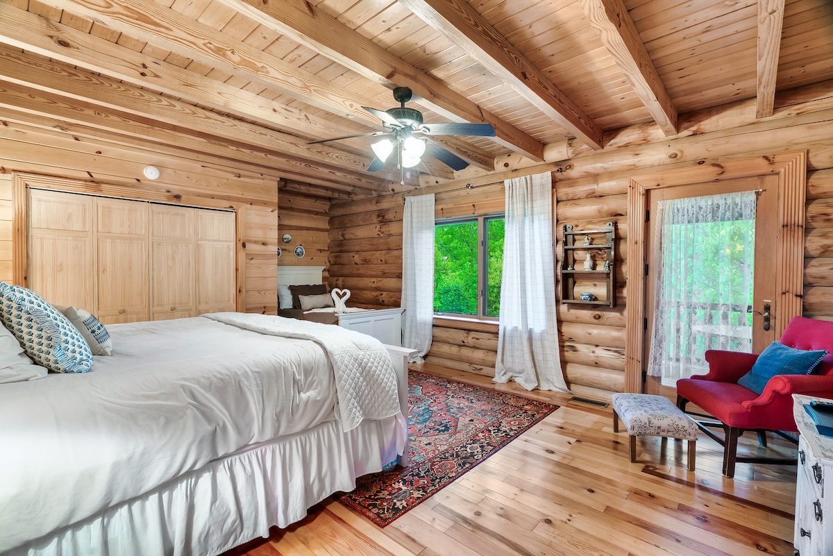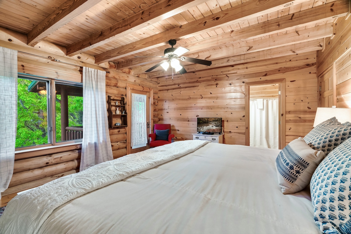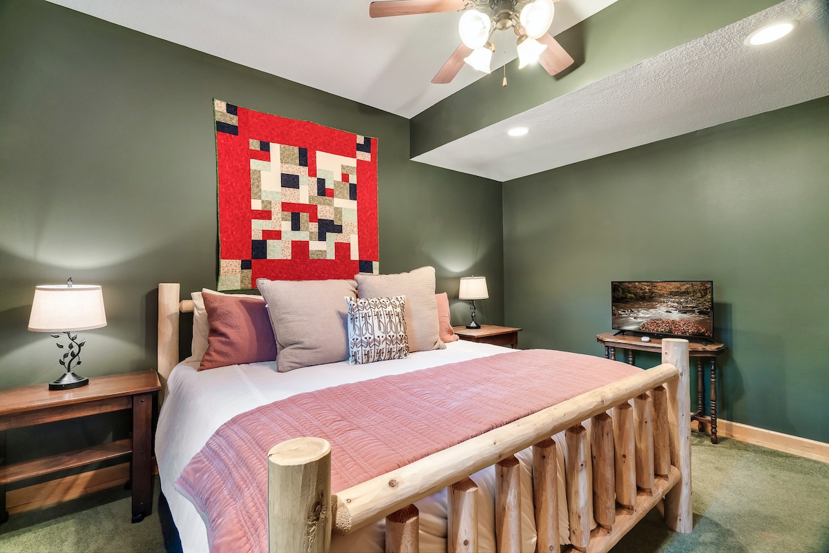 From the handcrafted pine logs to the soaring cathedral ceilings and stone fireplaces, every detail of The Knotty Lodge blends rustic charm with modern luxury. Wake up to panoramic views from 2,100 feet above sea level and enjoy peaceful mornings or relaxing sunsets from the spacious decks.